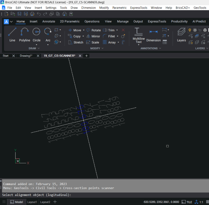 Und ein dritter, verwandter Befehl GT_CS-SCANNER, der Ihnen hilft, querschnittsbezogene 3D-Polylinien aus einer Gruppe von Punkten entlang einer Achse zu erstellen.