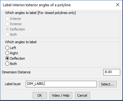 If a closed polyline is selected, CP_ANGLABEL offers the options to label either the Interior / Exterior or Deflection angles.