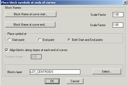 The CP_ANNOTATEENDS command is used to place a block at either or both ends of a curve object. A curve object can be either a LINE, POLYLINE, ARC or SPLINE.