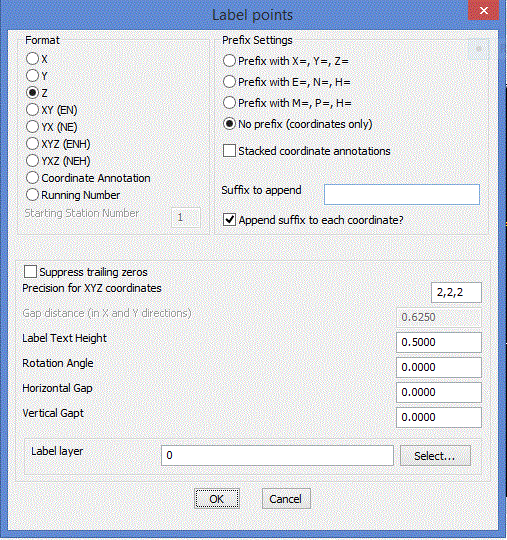 This command places text labels along polyline, line, 3dfaces and spline vertices. The following types of labels can be created for each vertex.