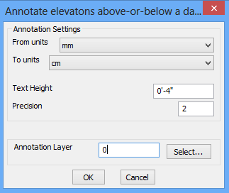 Menu : CADPower -> Annotation -> Mark levels above-or-below a selected datum