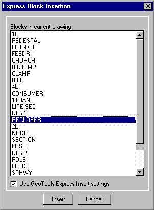 Menu : CADPower -> Blocks -> Block-related -> Express Block Insert