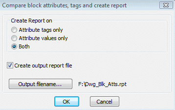 Menu : CADPower -> Blocks -> Block-Related -> Compare block attribute and create report