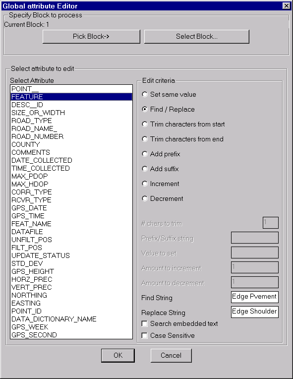 The CP_ATTEDIT performs global editing of block attributes as shown in the dialog box below.