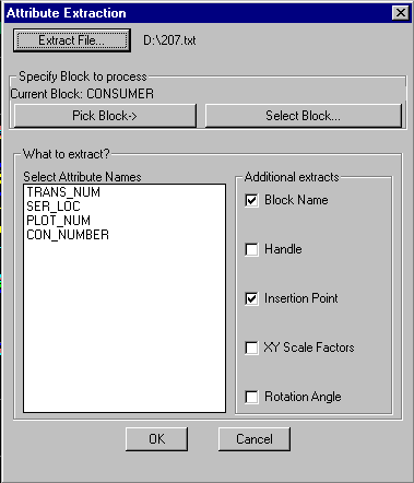 The CP_ATTEXT command extracts selected attributes from blocks along with a number of other basic properties like insertion point, X, Y scale factors, rotation angle and handle.