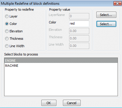 Menu : CADPower -> Blocks -> Block-related -> Multiple Redefine Blocks-Lyr/Clr
