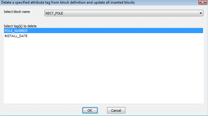 The CP_TAGDEL command is an block definition management tool used to delete attribute tags from a block definition and update all inserted blocks with the new block definition.