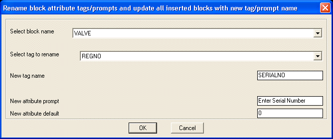 Menu : CADPower -> Blocks -> Attribute-related -> Rename block attribute tags, prompts and defaults