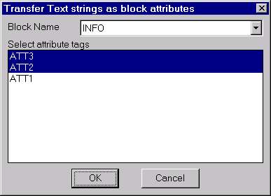 The CP_TXT2ATT command is used to transfer text strings as block attributes. Using this command, you can select a block name and specify the attributes you wish to transfer. Each attribute will then be populated with selected text strings.