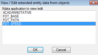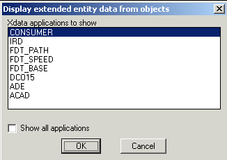 The CP_SHOWXD command displays on the command line extended entity data from a single selected object for specified application names (see dialog box).