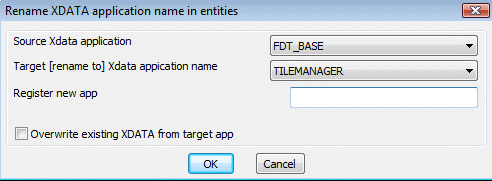 The CP_XD_RENAMEAPP command is used to change the application name in XDATA that is already attached to entities. Use this tool as a means to transfer extended entity data from one application to another.