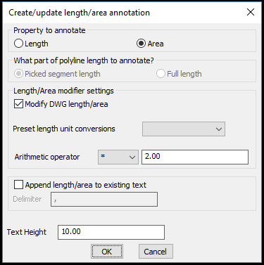 The GT_LENTEXT command creates a length or area annotation. If you have a line, polyline, arc, spline or a circle, its length (and area, where applicable for closed curves) can be easily annotated as text using this command. You can create .