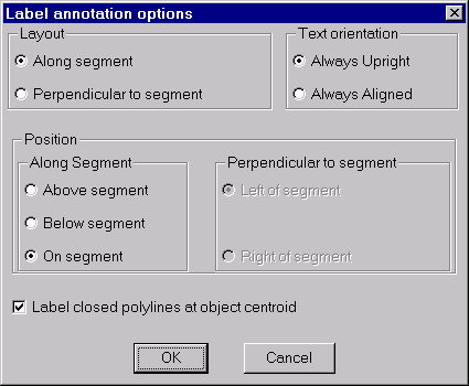 Style: This button brings up the annotation style dialog box that determines how the text label annotation is to be placed relative to the polyline and view direction