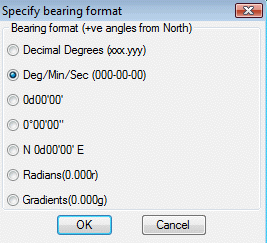 Bearing: Clicking this option opens up a bearing format dialog box. This allows the bearings to be annotated in various ways.