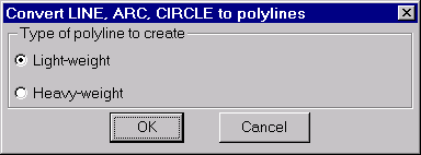 The GT_LINE2PL command is used to convert LINE, ARC and CIRCLE objects into polyline objects. The dialog box allows options to create either a light weight or heavy weight polyline out of the source objects.