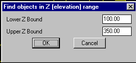 The GT_FINDZRNG command selects all objects whose Z values fall within a specified range. This is a useful QA / QC tool.